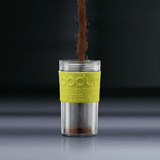 Travel Press Vacuum Coffee Maker with Extra Lid (Small), 0.35L/12oz - Lime Green