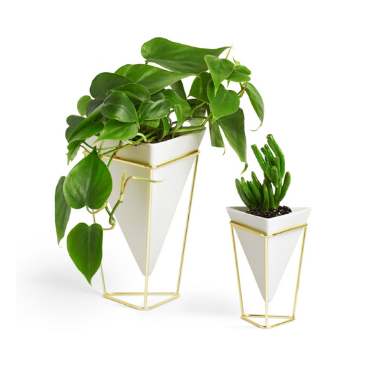 Triflora Hanging Planter (Set of 3) - White/Brass