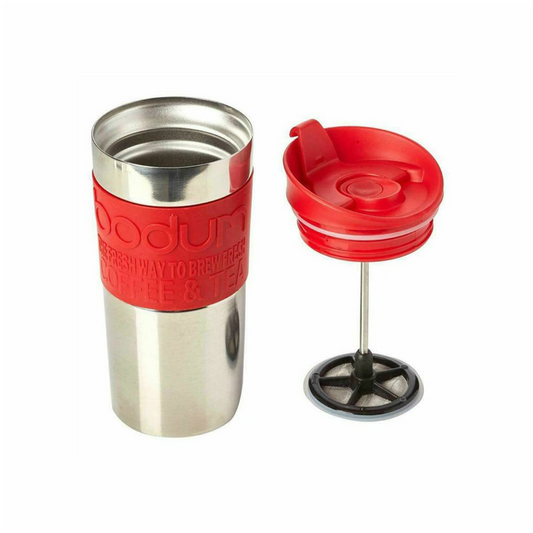 Travel Press Vacuum Coffee Maker with Extra Lid (Small), 0.35L/12oz - Ribbon Red