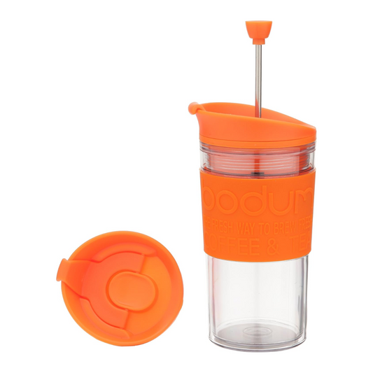 Travel Press Coffee Maker with Extra Lid, 0.35L/12oz - Orange