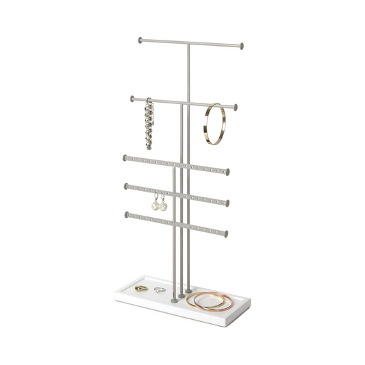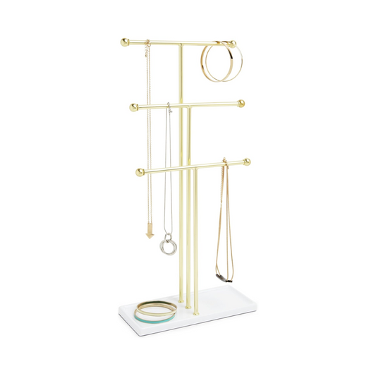 Trigem 3-Tier Jewelry Tree - White/Brass