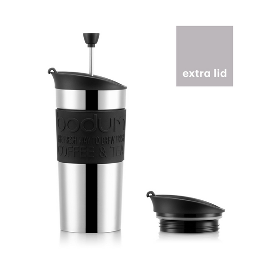Travel Press Vacuum Coffee Maker with Extra Lid (Small), 0.35L/12Oz - Black