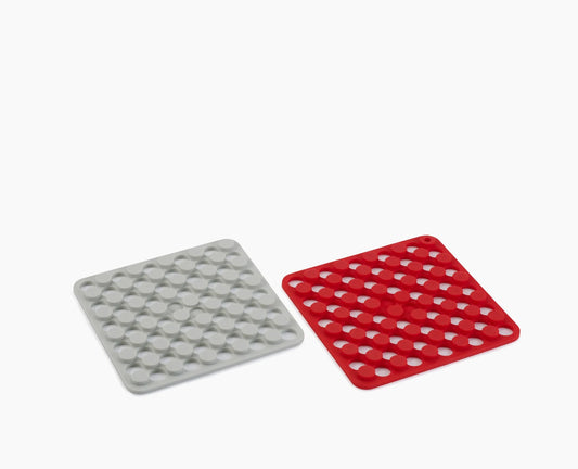 DUO Spot-On Silicone Trivets (Set of 2) - Grey/Red