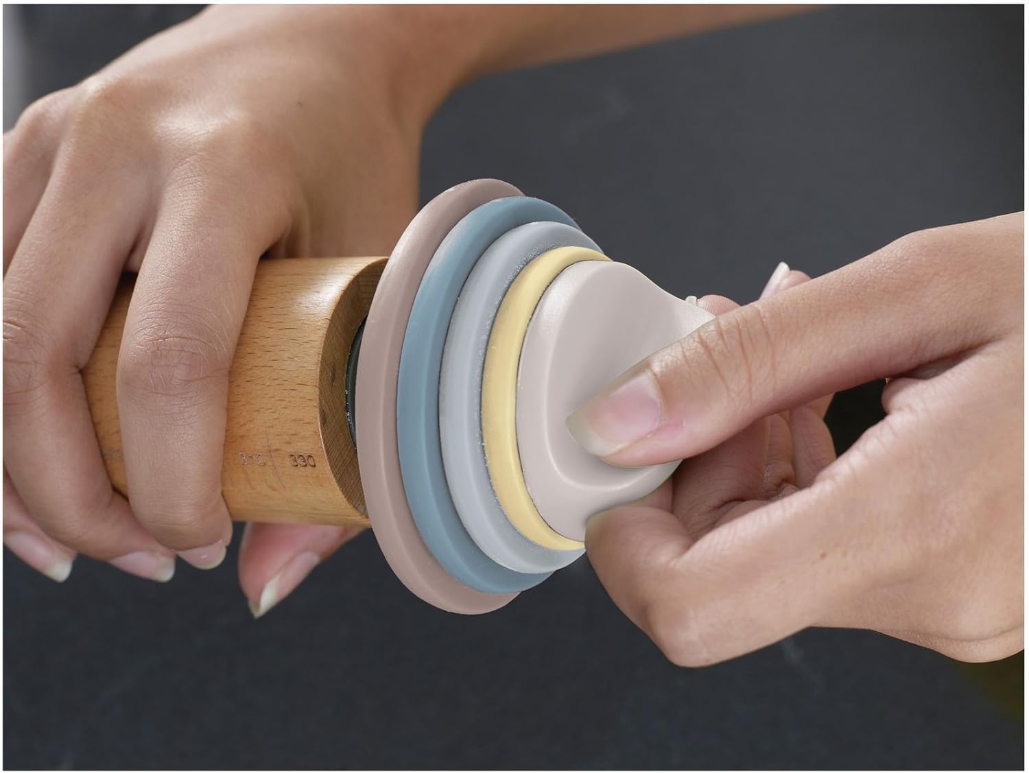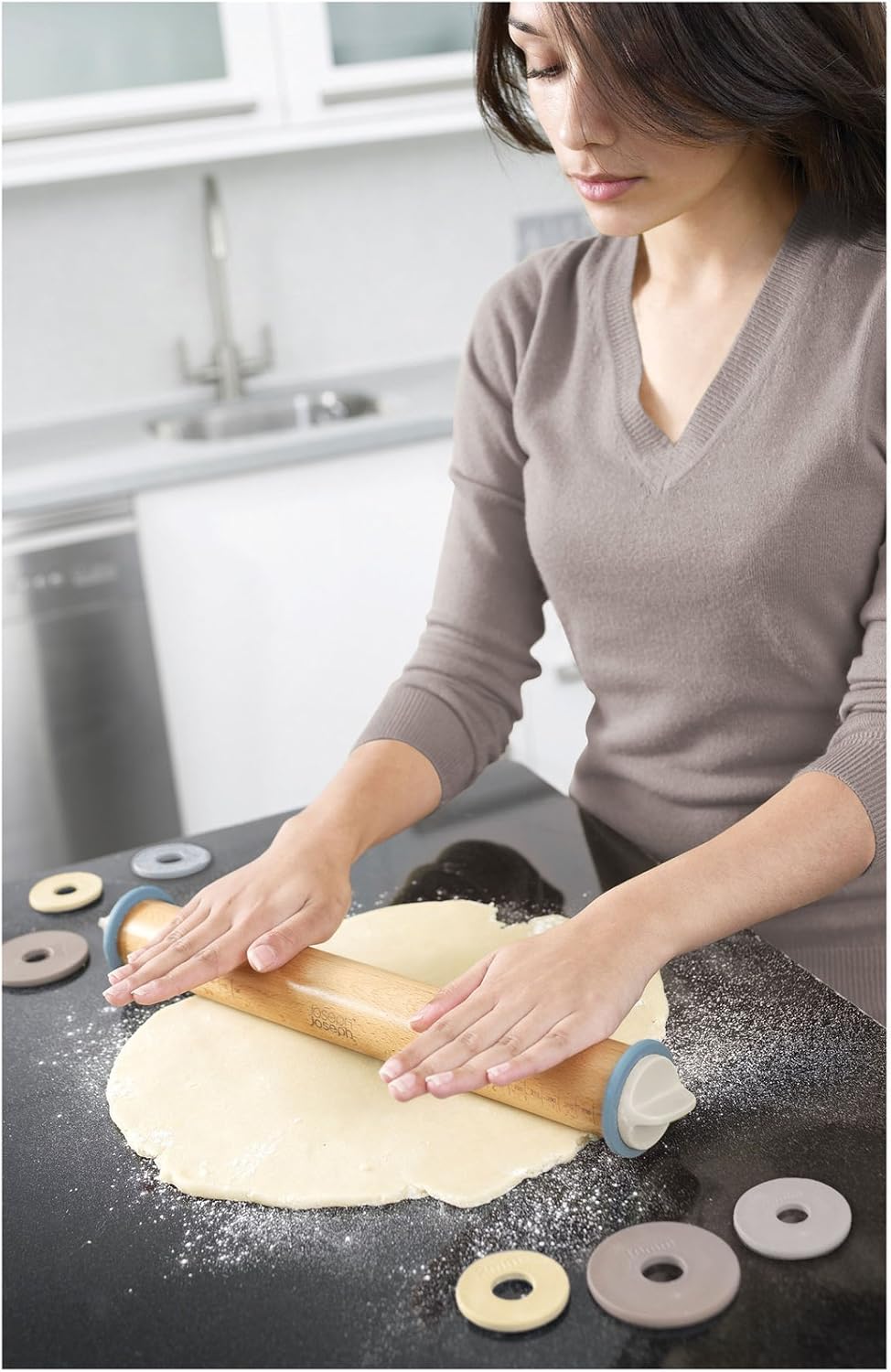 The Adjustable Rolling Pin takes the guesswork out of preparing dough and pastry. With four sets of removable discs, it allows you to roll to precise thicknesses for perfectly even results every time.
