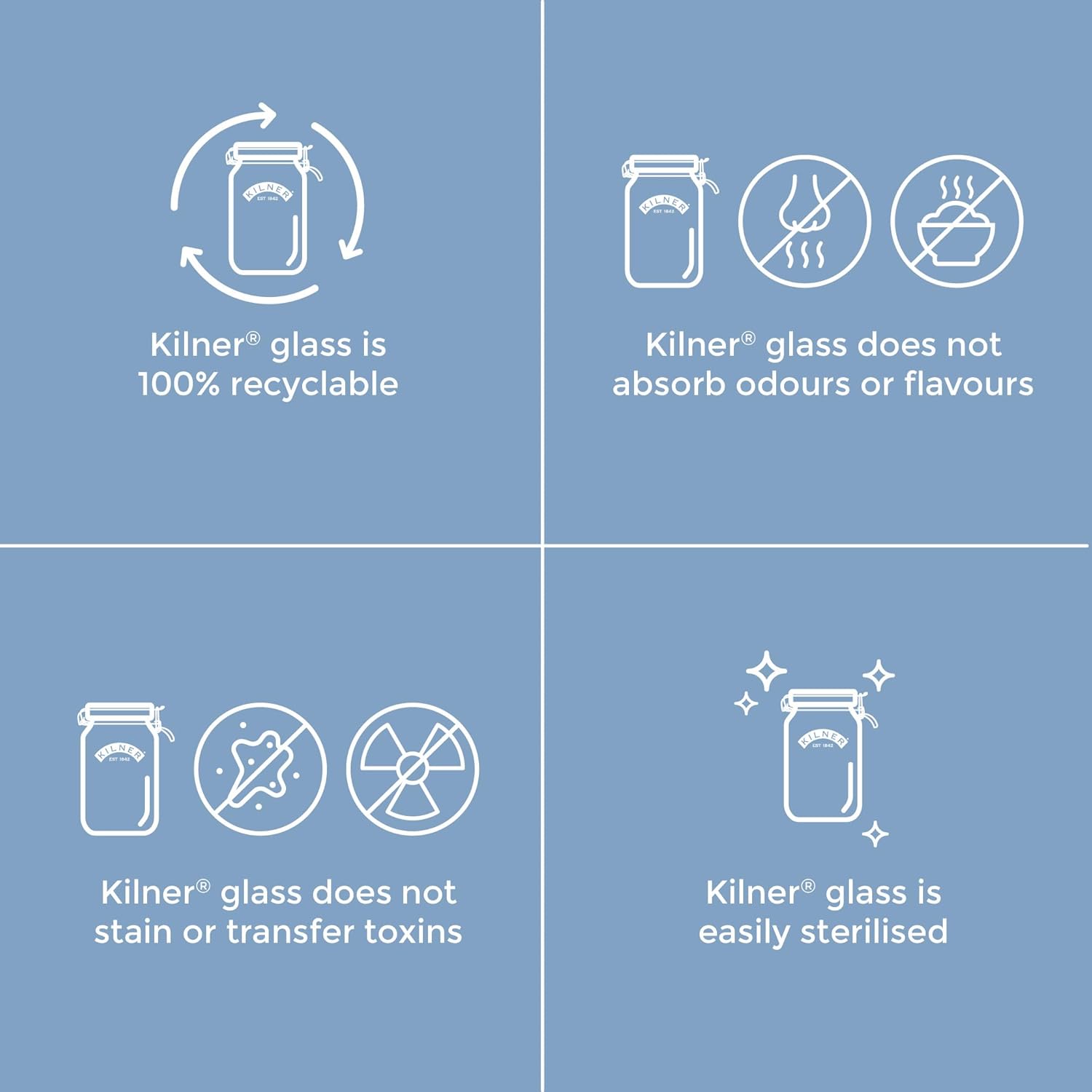 - Eco-Conscious and Reusable - A plastic-free, sustainable storage option aligned with Kilner’s Reuse, Refill, Recycle philosophy.