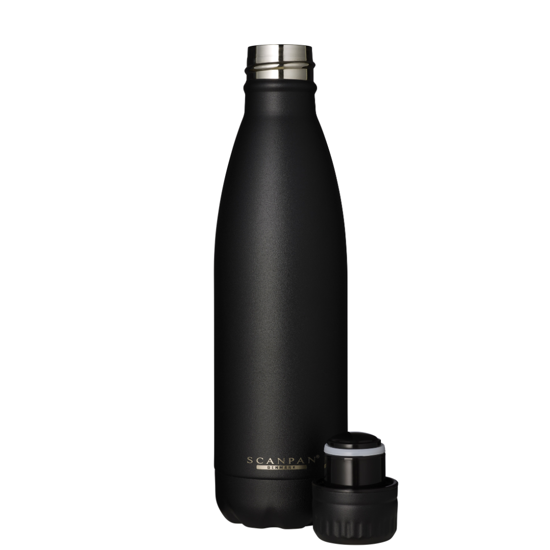Our sleek, satin-finish dual wall vacuum insulated water bottles keep cold drinks cold and hot drinks hot without sacrificing on style. The condensation-free exterior keeps your drink from sweating to ensure that your hands and your bags stay dry. Whether on the go or at home, your Scanpan TO GO bottle will be your favorite colorful accessory.