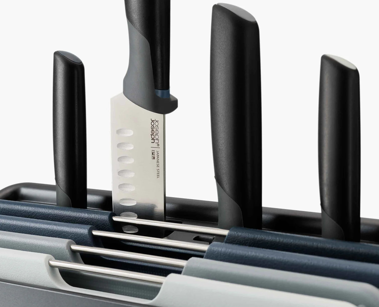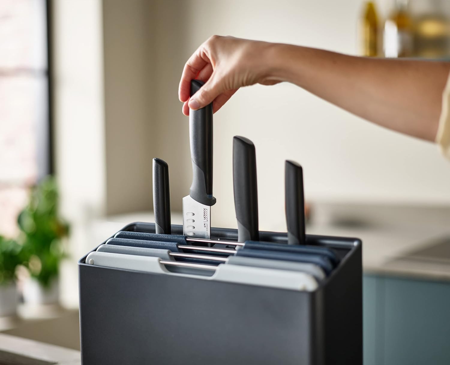 The Folio™ Plus Set combines chopping boards and knives in one stylish, slimline case. Designed for organized storage and hygienic food prep, this 8-piece set is perfect for any modern kitchen.