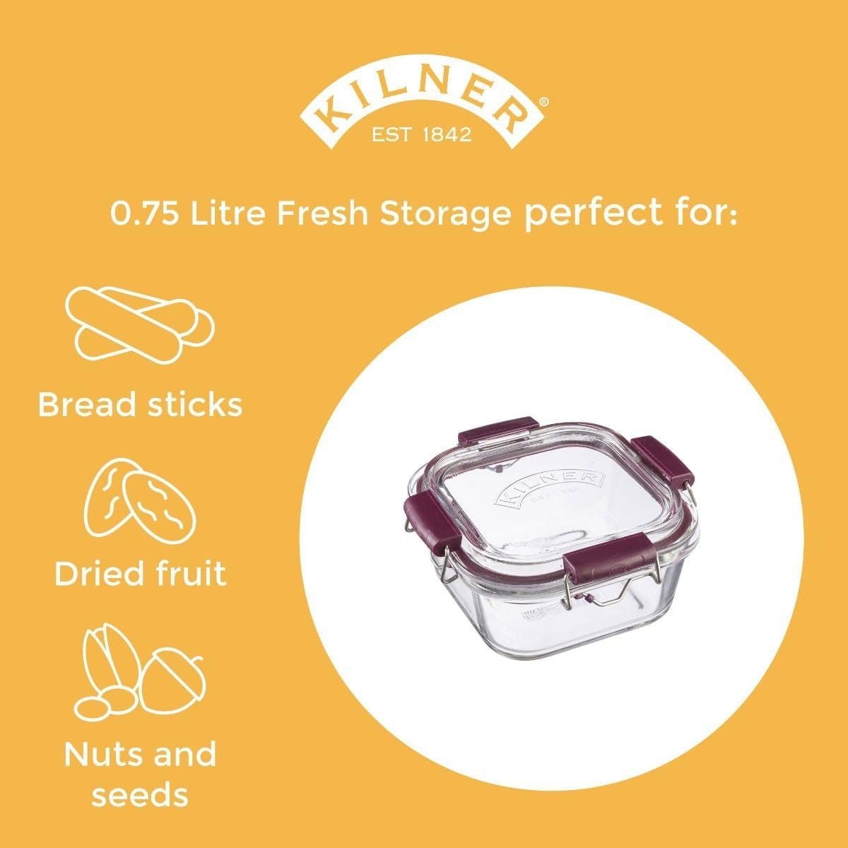 The Kilner Fresh Storage 0.75L container is a compact, plastic-free solution for storing, transporting, and reheating food. Ideal for salads, lunches, or meal prepping, this versatile container is crafted from durable borosilicate glass with Kilner’s signature stainless steel clip system to ensure a reliable airtight seal. Designed for modern kitchens, it’s oven, microwave, freezer, and dishwasher safe—making it as practical as it is sustainable.
