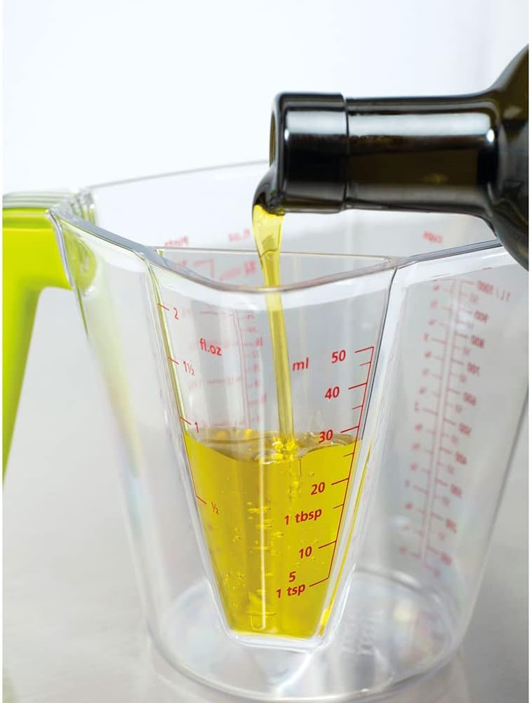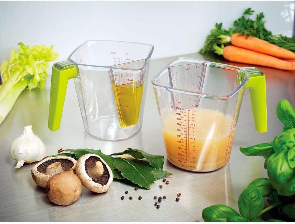 Smartly designed for precision and convenience, this versatile 2-in-1 measuring jug by Joseph Joseph makes both small and large measurements easy with its dual-chamber design.