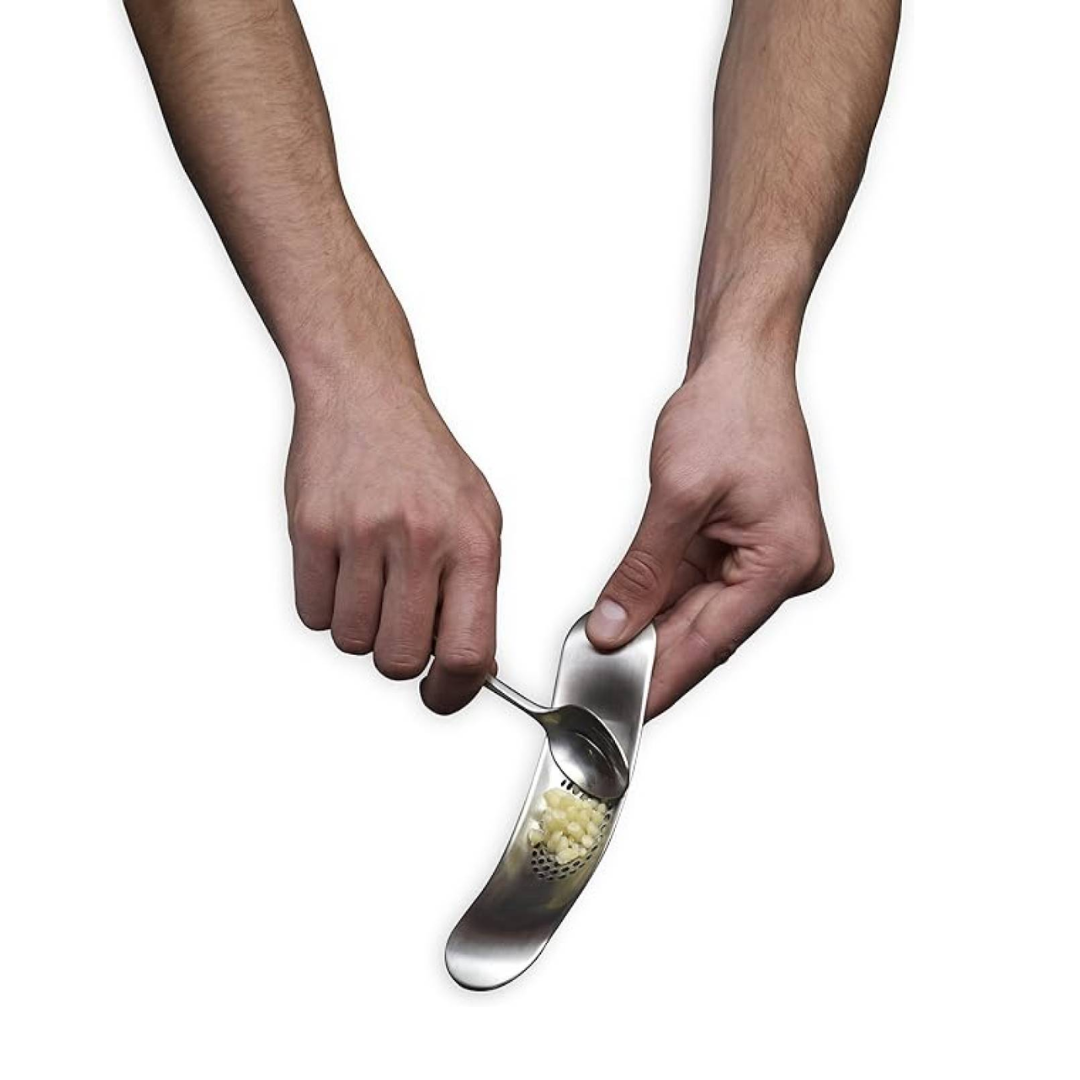 The Rocker Garlic Crusher makes preparing garlic quick and mess-free. Its unique rocking design allows you to crush cloves effortlessly, while the curved shape collects the garlic for easy transfer to your pan.