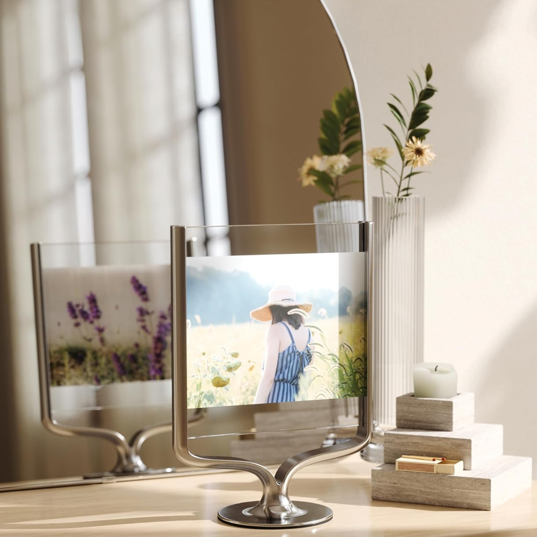 Wishbone's 360-degree beauty allows you to showcase two images - viewed from either side of the frame; floats 4x6 or 5x7 images